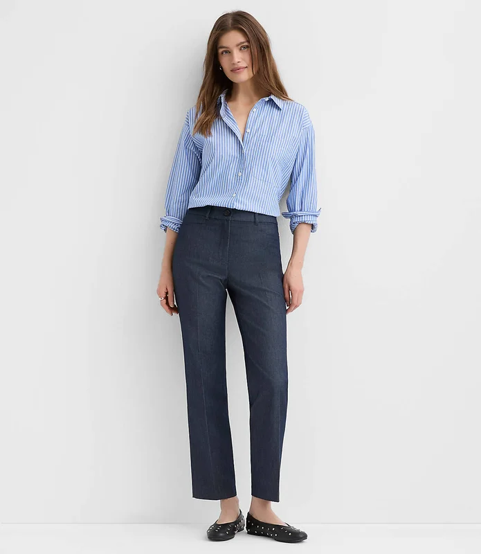 Yoke Button Denim Midi Skirt in Classic Mid Wash